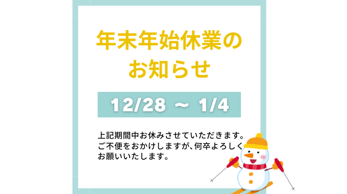 年末年始休業のお知らせ